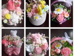 Naši cvetni aranžmani nastaju od satenskih ruža, sveća i sapuna, silikonskih balona i dekorativnih figurica. Možete odabrati gotove kompozicije ili poručiti personalizovan aranžman prema vašim željama.